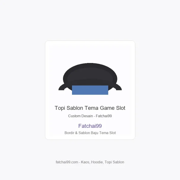 Fatchai99 spesialis bordir dan sablon baju tema game slot. Topi ini melengkapi rangkaian: kaos sablon, hoodie sablon, dan kini topi. Cocok untuk afiliasi yang ingin merchandise lengkap atau komunitas yang butuh seragam. Terima custom desain, bahan berkualitas, hasil rapi.
